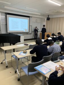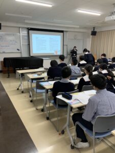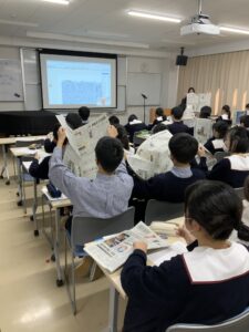2年生国語科で、『投稿文の書き方』について、朝日新聞NIE事務局の方に出前授業をしていただきました。コロナ禍であるため、オンライン授業となりましたが、90分間熱心に取り組み、実際に生徒の投稿文を添削していただいたり、新聞の読み方や新聞記者という仕事についてキャリア学習の視点でも話していただきました。質疑応答にも活発にできて、有意義な時間となりました。