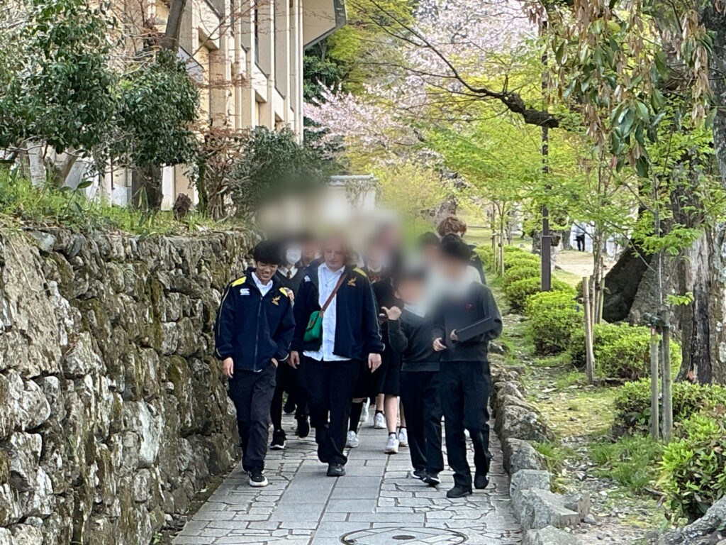 今日は、学校周辺の坂本散策を研修団としました。写真はその様子です。
