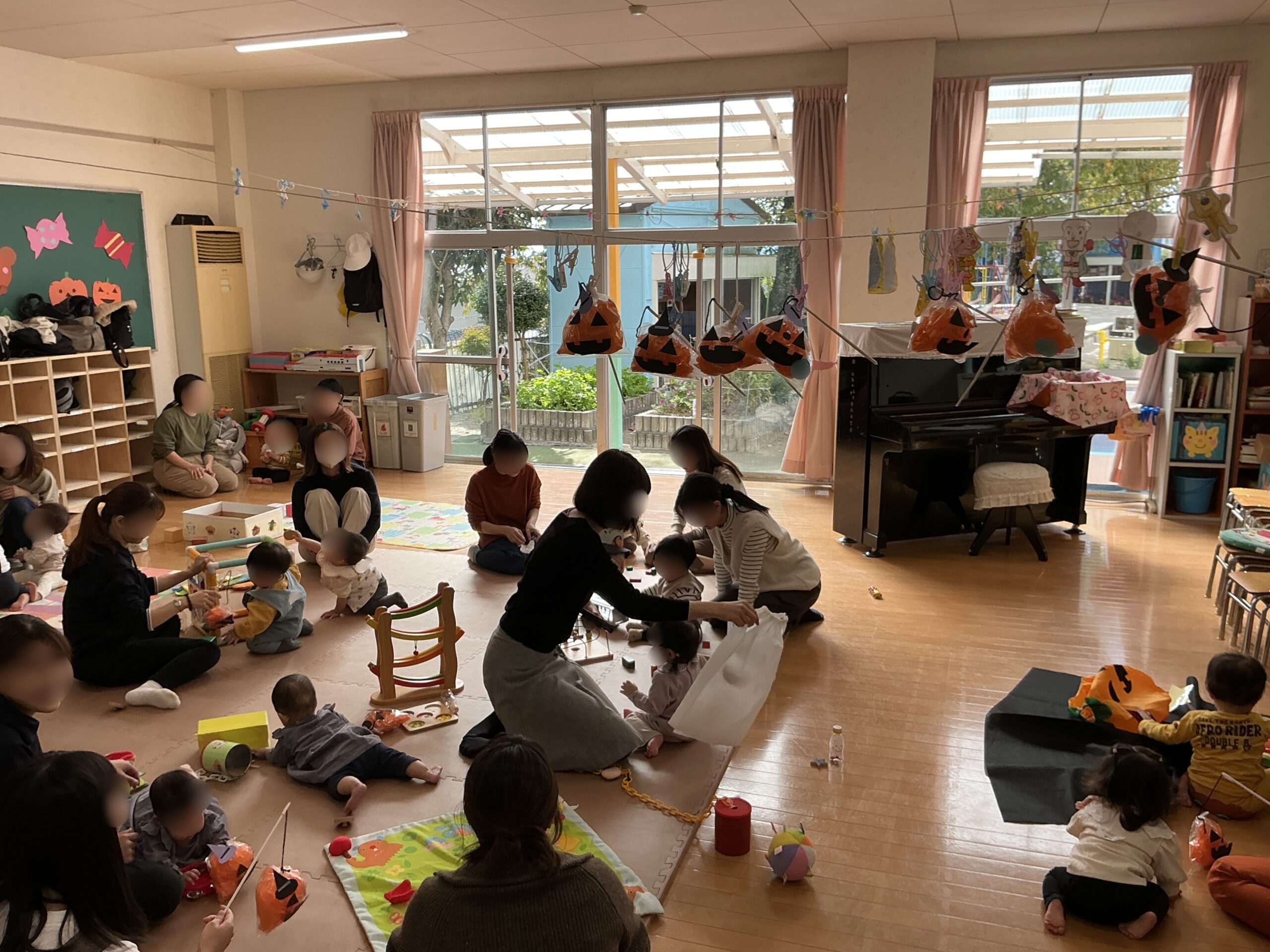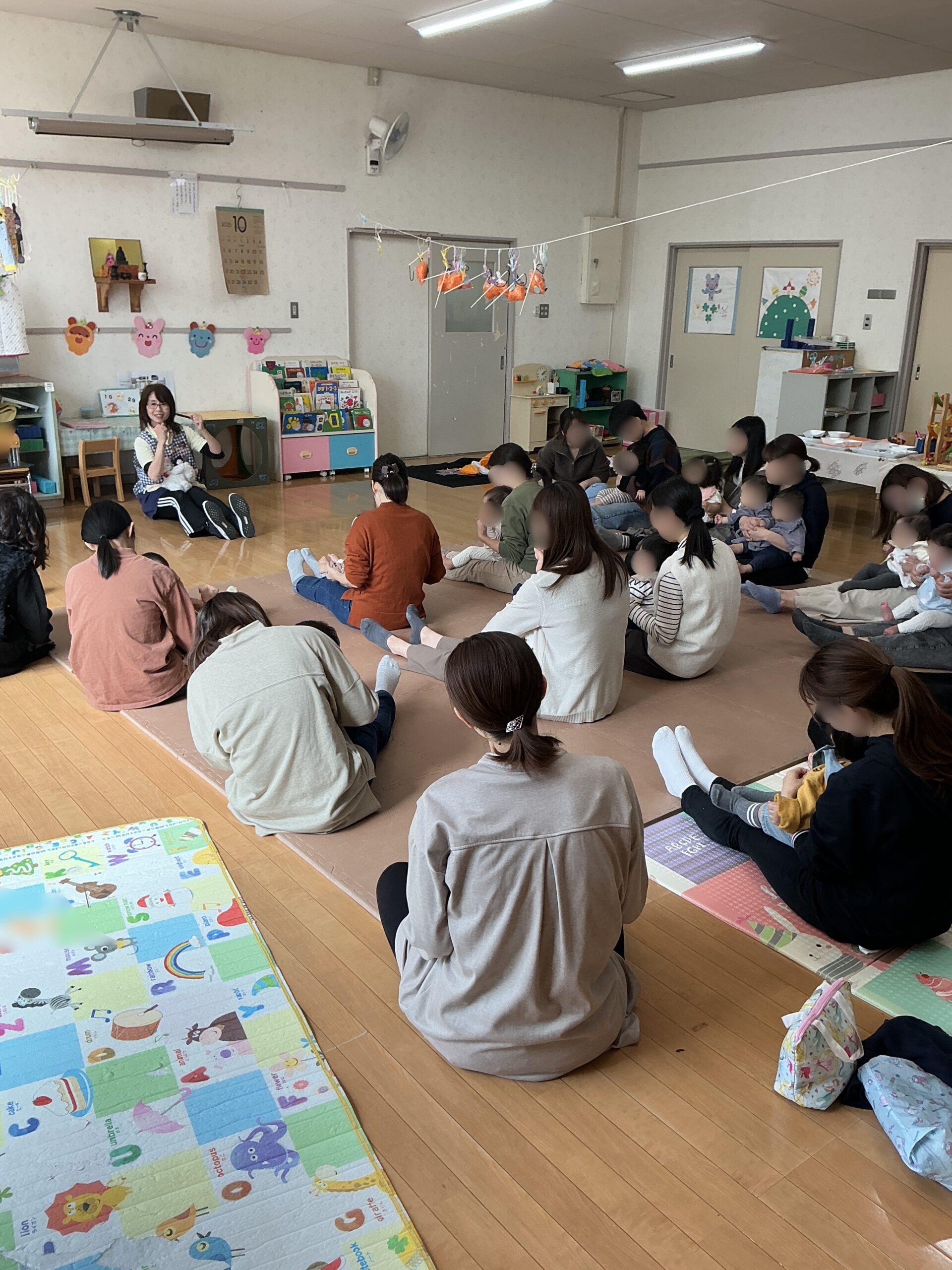今日はめだか組(0歳児対象)があり、たくさんのお友達が遊びに来てくれました!