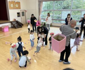 園長先生が持っているかごに玉を一生懸命に入れる子ども達の姿がとても可愛いかったです♪