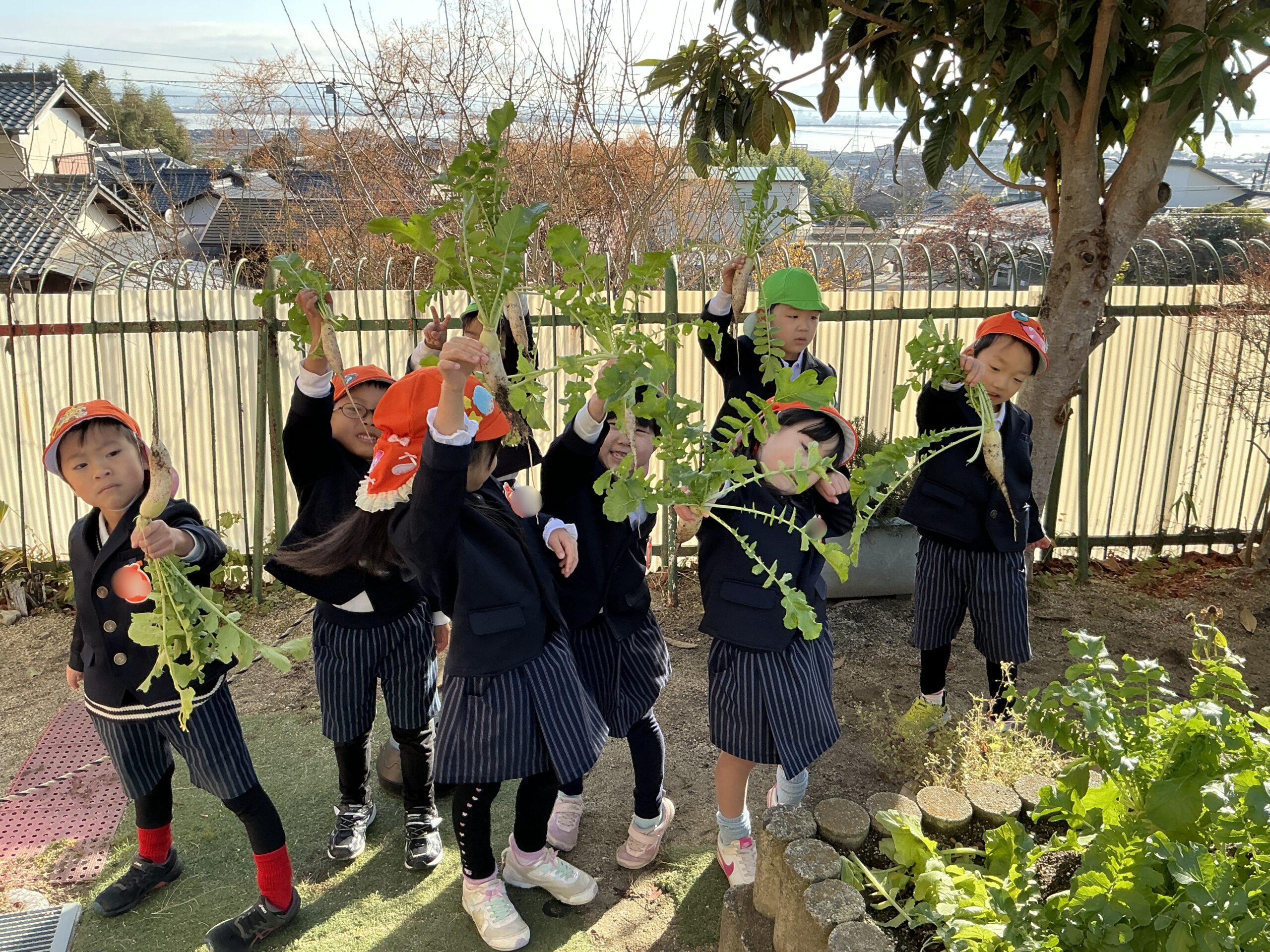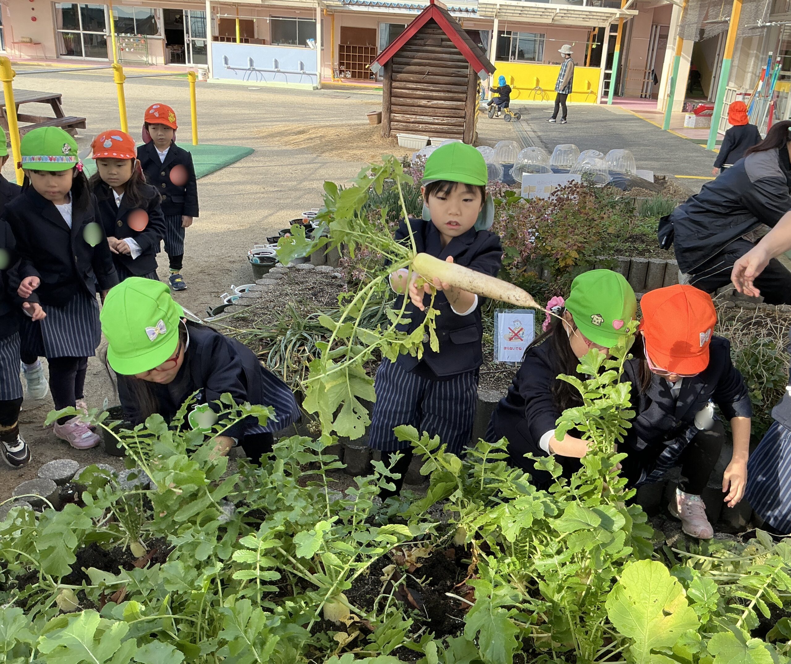 年長さんが植えた大根が、更に大きくなったので一人一本ずつ持って帰ることに・・・☺