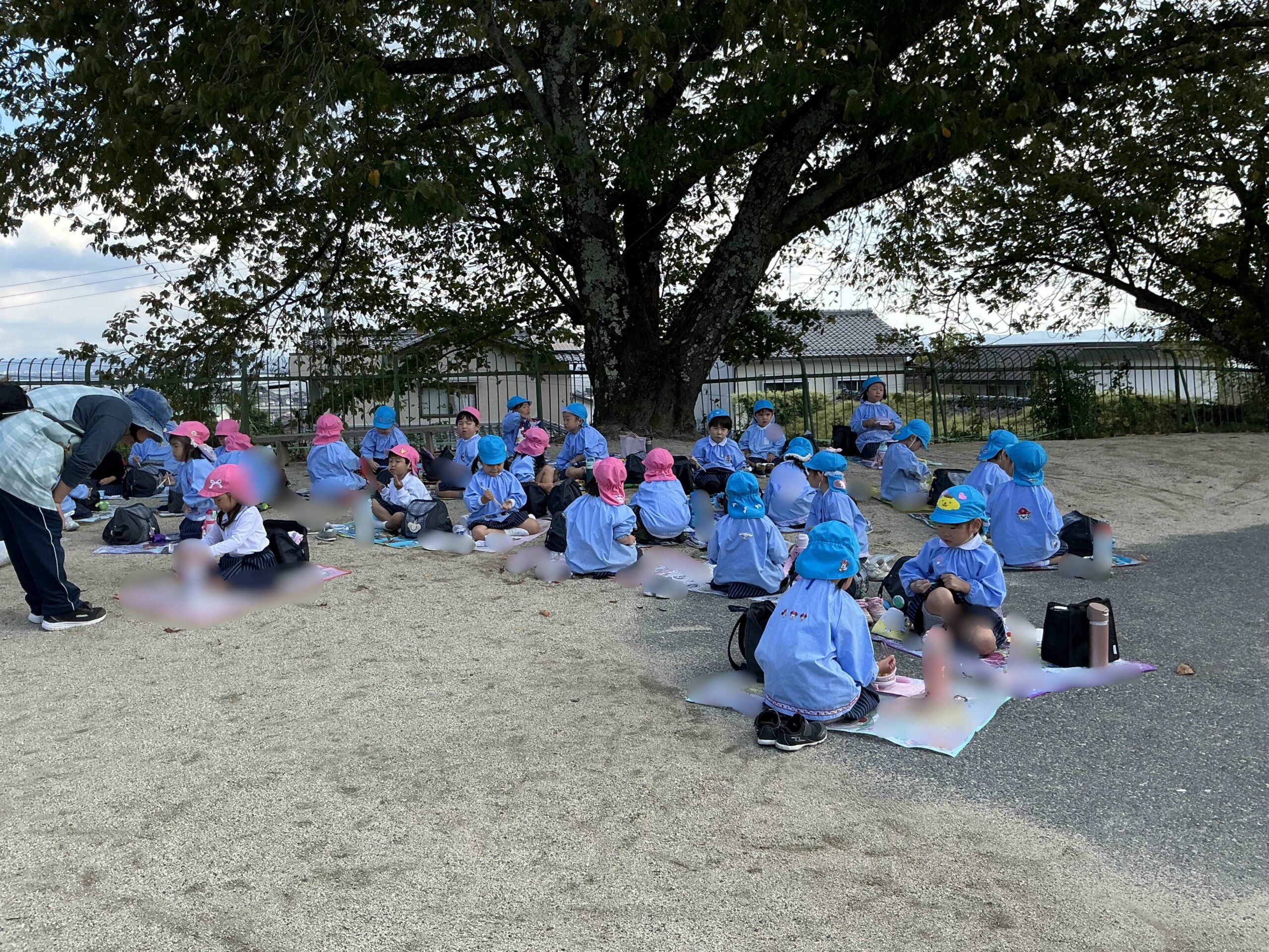 心地良い秋風が吹く中、年少組が合同でお弁当を食べました😊