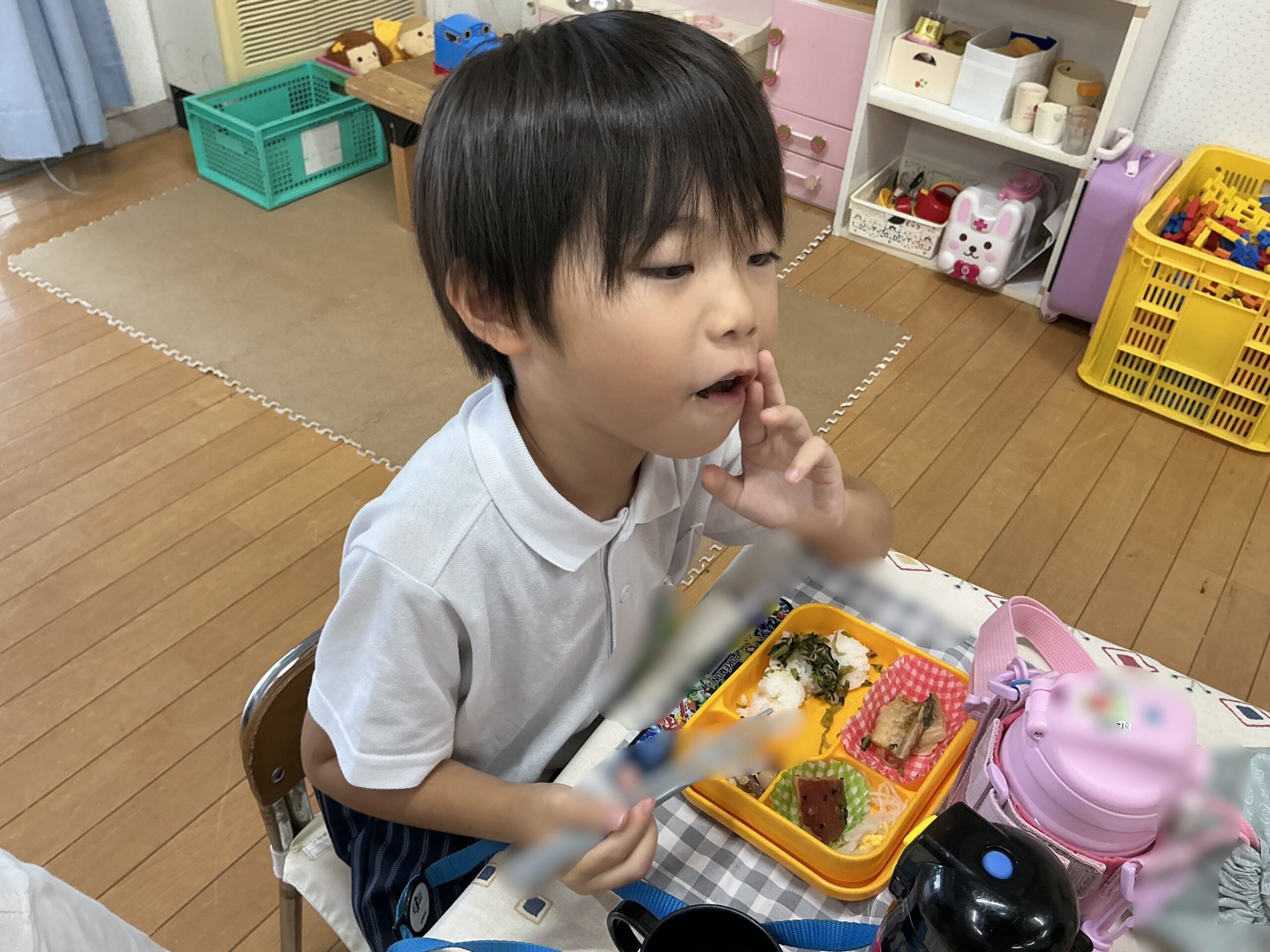 お家でお子さんが食べることは少ない摘まみ菜の炒め物ですが、子ども達はご飯と一緒に「美味しい!美味しい!」とパクパク食が進んだようです。ただ、ゆがいた摘まみ菜とゆがいていない摘まみ菜の味比べは分かりにくかったらしく、どちらも美味しかった!とのことでした。