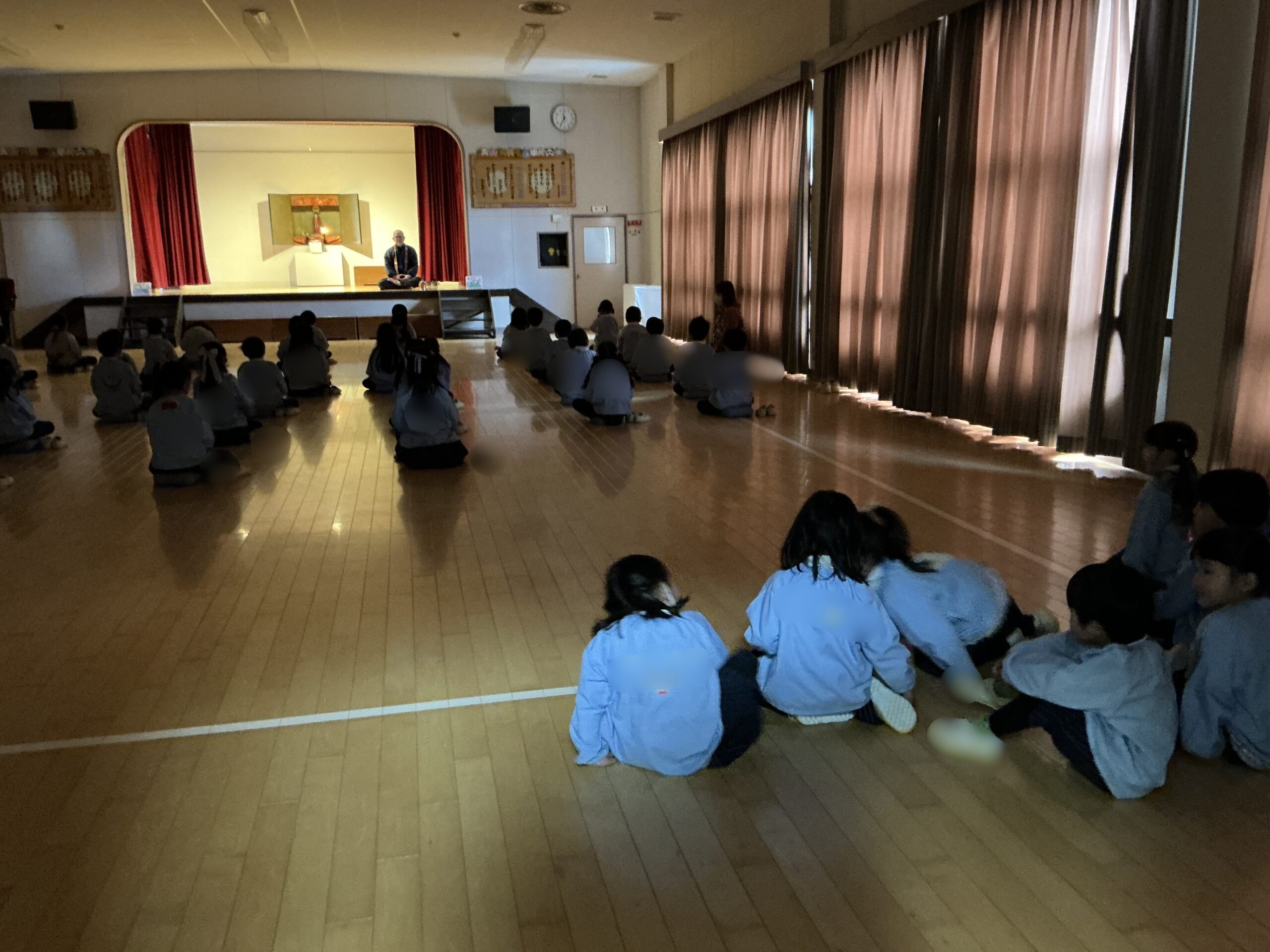 比叡山幼稚園では、年中組になると園長先生から「坐禅止観」の指導をしていただきます。