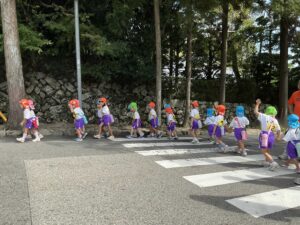 年長さんと手をつないで中学校へリハーサルに出発です!