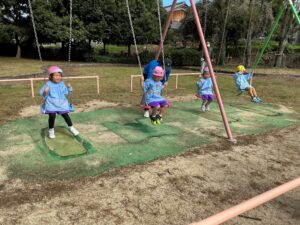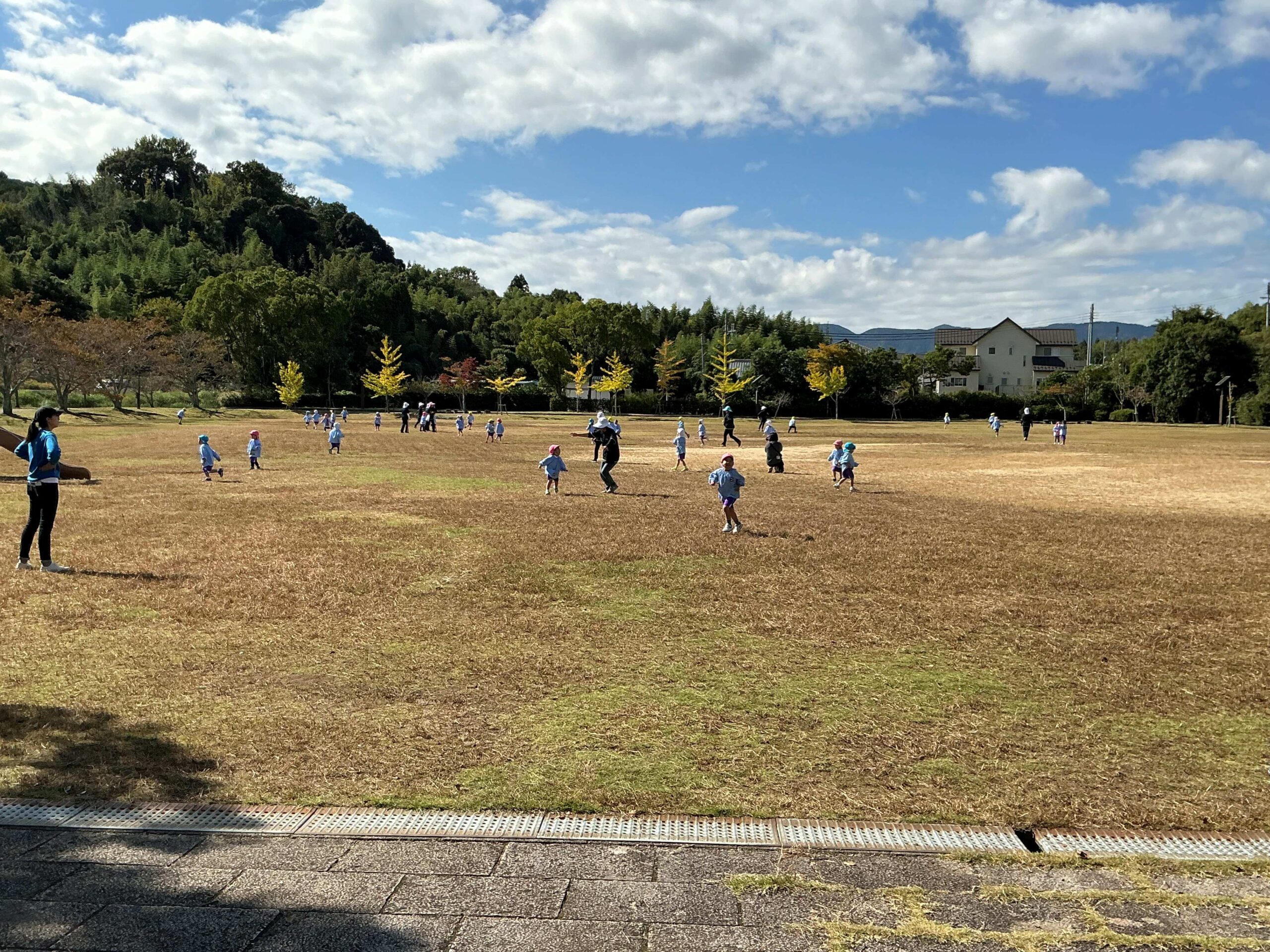 お昼からは、もう少し奥にある「いちょうの広場」に移動して遊具で遊んだりみんなで鬼ごっこしたり、丘の上から転がったり・・・・