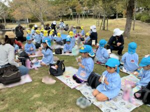 今日は、年中・年少組の子ども達が「和邇公園」に遠足に出かけました。カレンダーに遠足と書き込まれているのを見てとーっても楽しみにしていたのです。寒くも暑くもない心地良いお天気😊自然の中でたっぷり遊ぶことができました。
